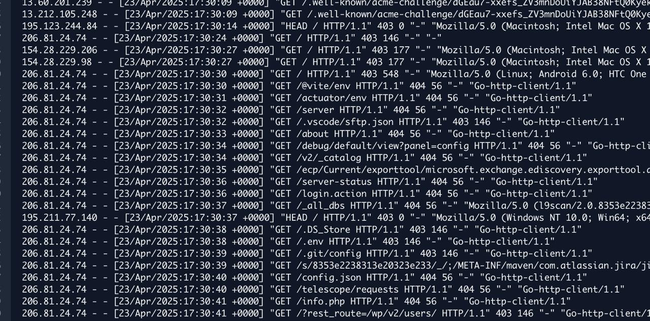 I recently set up a new server for a project, and when I looked at the access logs, I was surprised to see it was already being actively scanned for exploits.